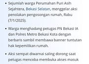 Sejumlah warga di Perumahan Puri Asih Sejahtera, Kecamatan Bekasi Selatan, Kota Bekasi melakukan aksi penolakan pengosongan rumah pada Rabu (7/1/2025).